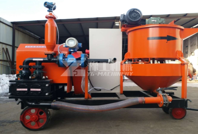 泵送壓力大:本設(shè)備配套雙缸活塞式砂漿注漿泵,注漿為缸體交互連續(xù)式工作方式,壓力穩(wěn)定,泵送漿體無氣泡,高可達(dá)8MPa