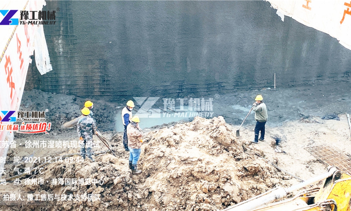 徐州奧體中心地鐵站項目,由中鐵十八局承建,此次訂購的液壓濕噴機(jī)主要用于地鐵基坑支護(hù)施工??蛻糁坝嗁彽霓D(zhuǎn)子式噴漿機(jī),因為工人反饋一直有堵管現(xiàn)象,影響工期,不得已重新訂購!為保證客戶工期不誤,工廠安排物流發(fā)專車連夜為客戶送貨。在與發(fā)貨部確認(rèn)設(shè)備到達(dá)的時間后,豫工售后與技術(shù)支持部工程師喬工乘高鐵從鄭州出發(fā),在設(shè)備送抵工地的第一時間趕到客戶工地——徐州中鐵十八局奧體中心地鐵站施工現(xiàn)場。作為對風(fēng)量、混凝土漿料要求很高的設(shè)備,試機(jī)過程中,液壓濕噴機(jī)采用骨料粒徑15mm,混凝土塌落度150-180的混凝土漿料,配合16/10型空壓機(jī),設(shè)備水平輸送距離輕松達(dá)到80米,垂直噴射距離達(dá)到50米,生產(chǎn)能力每小時7立方。